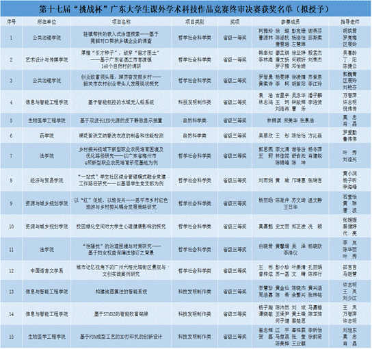 第十七届“挑战杯”广东大学生课外学术科技作品竞赛终审决赛广州新华学院学生获奖名单